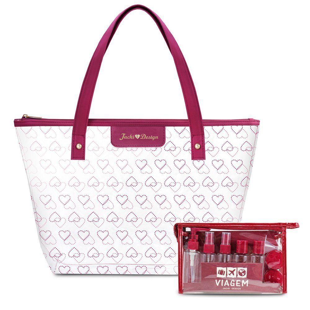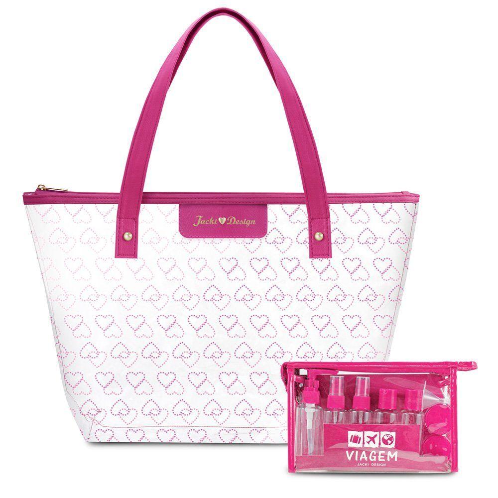 Kit De Bolsa Transparente E Frascos De Viagem De 7 Peças Pink