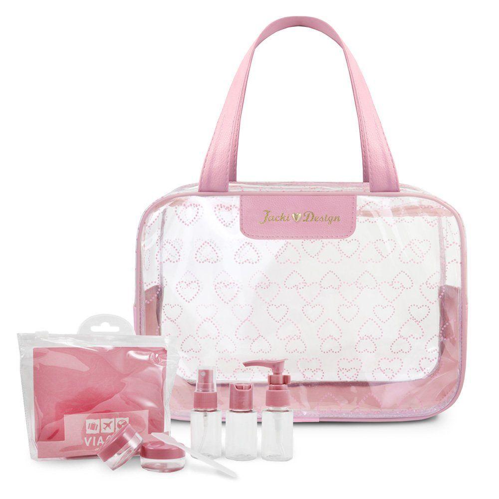 Kit De Bolsa Transparente E Frascos De Viagem De 7 Peças Rosa