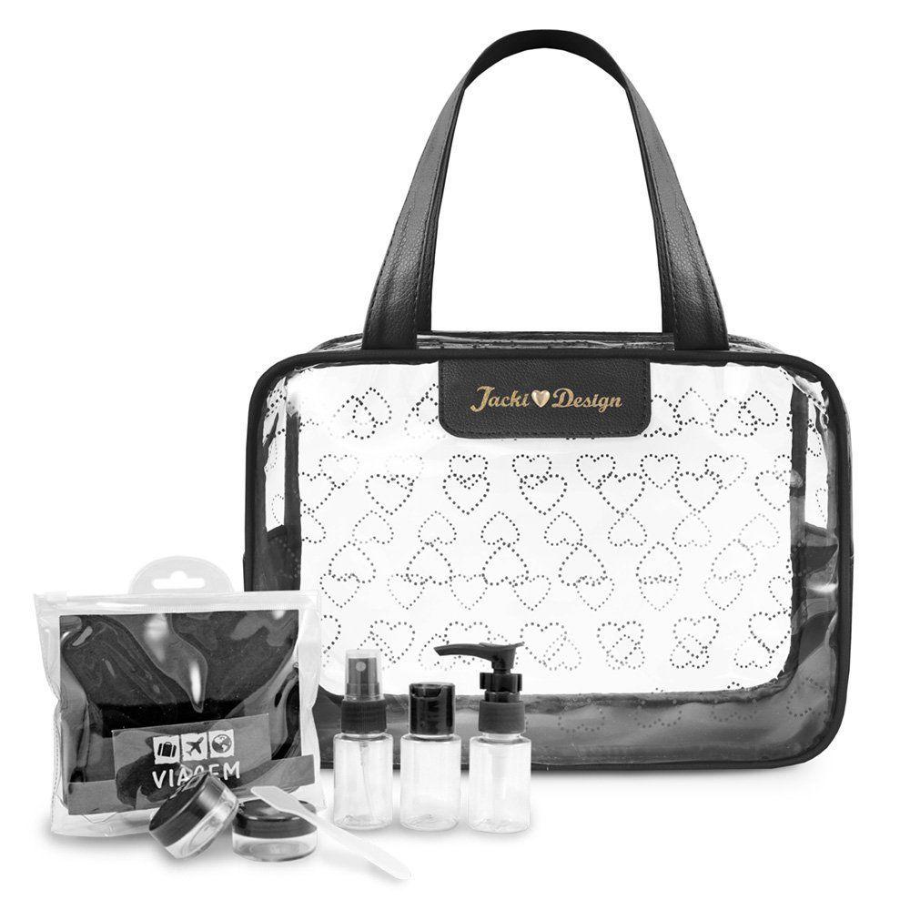 Kit De Bolsa Transparente E Frascos De Viagem De 7 Peças Preto