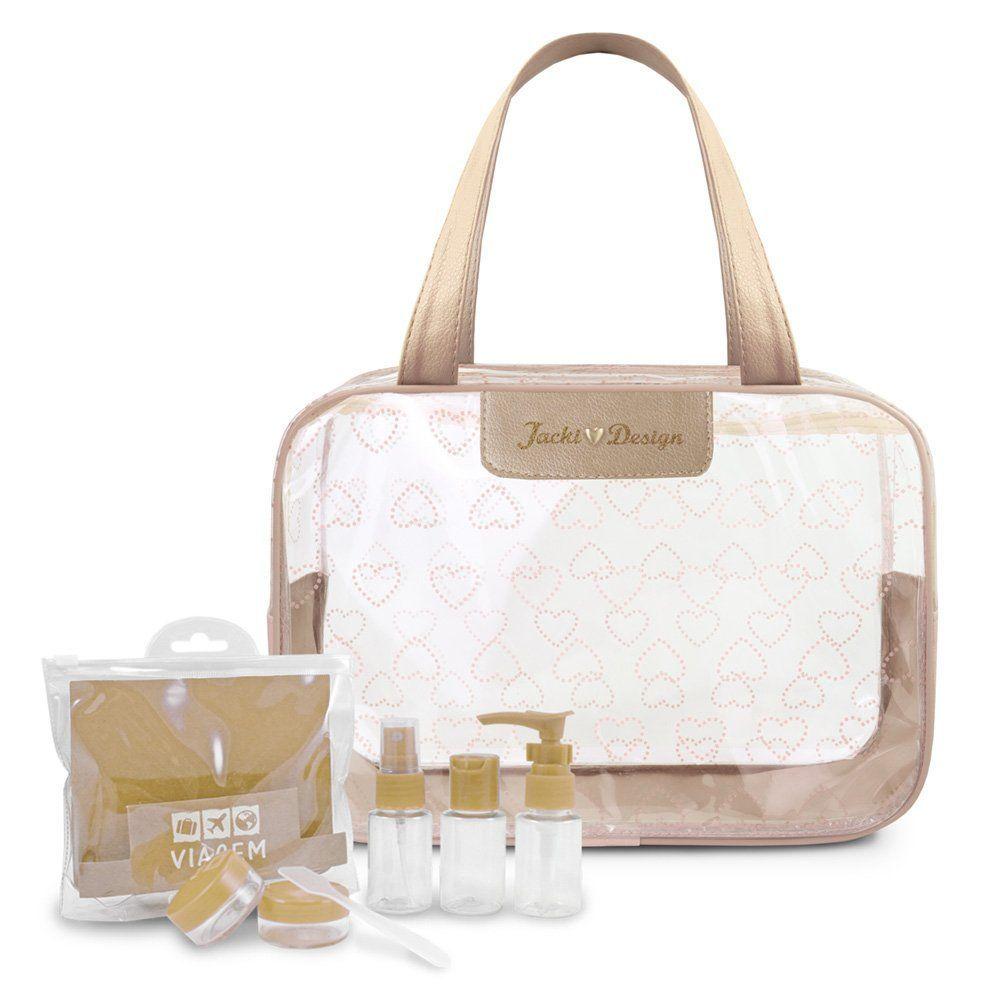 Kit De Bolsa Transparente E Frascos De Viagem De 7 Peças Bege
