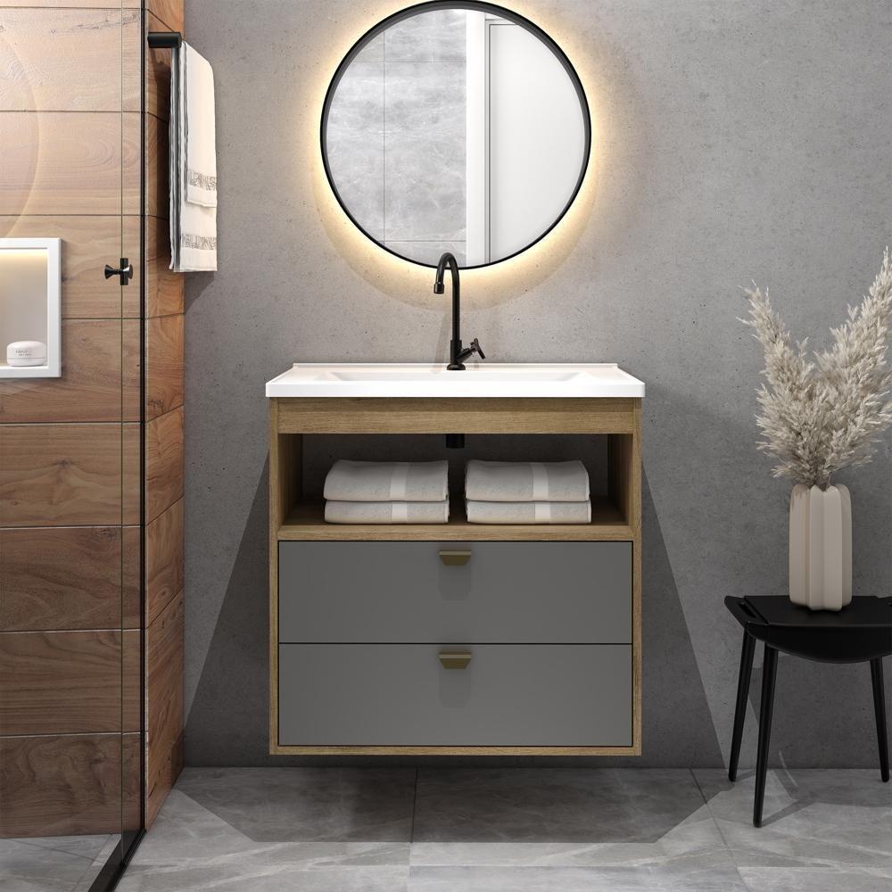 Bancada De Banheiro Balcão Portinari 1 Porta C- Cuba 80cm Titanium-freijo - Mgm