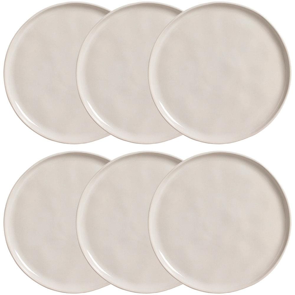 Conjunto com 6 Pratos Rasos Porto Brasil Clay em Cerâmica Stoneware 27,5 cm - Areia