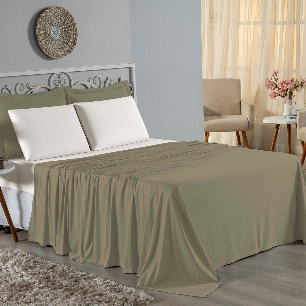 Jogo De Cama King Nobre 4 Peças Lençol Com Elástico De 30cm De Altura Malha 100% Algodão - Verde-bandeira / Palha
