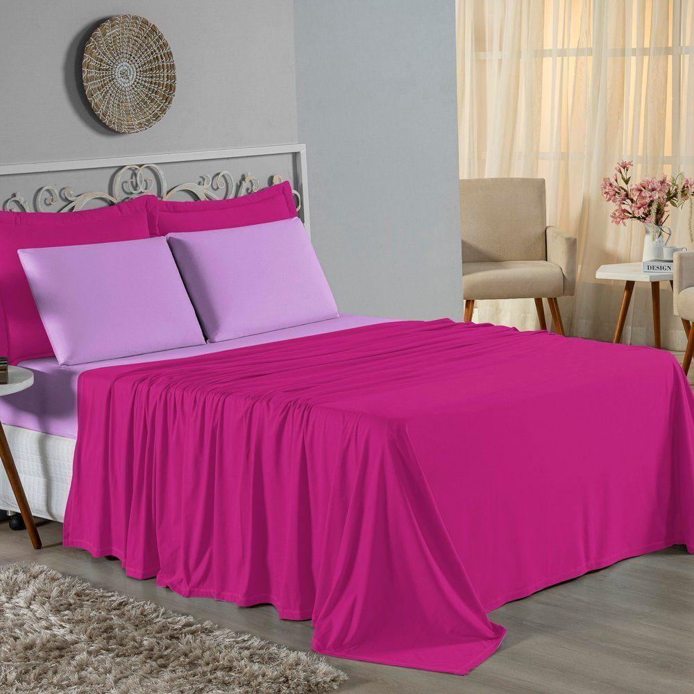 Jogo De Cama King Nobre 4 Peças Lençol Com Elástico De 30cm De Altura Malha 100% Algodão - Pink / Lilás