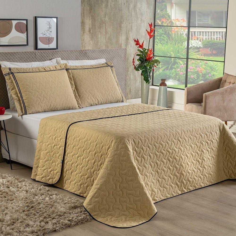 Kit Cobre Leito Colcha Caprice Queen 3 Peças Bordado Hiperpercal 180 Fios - Preto