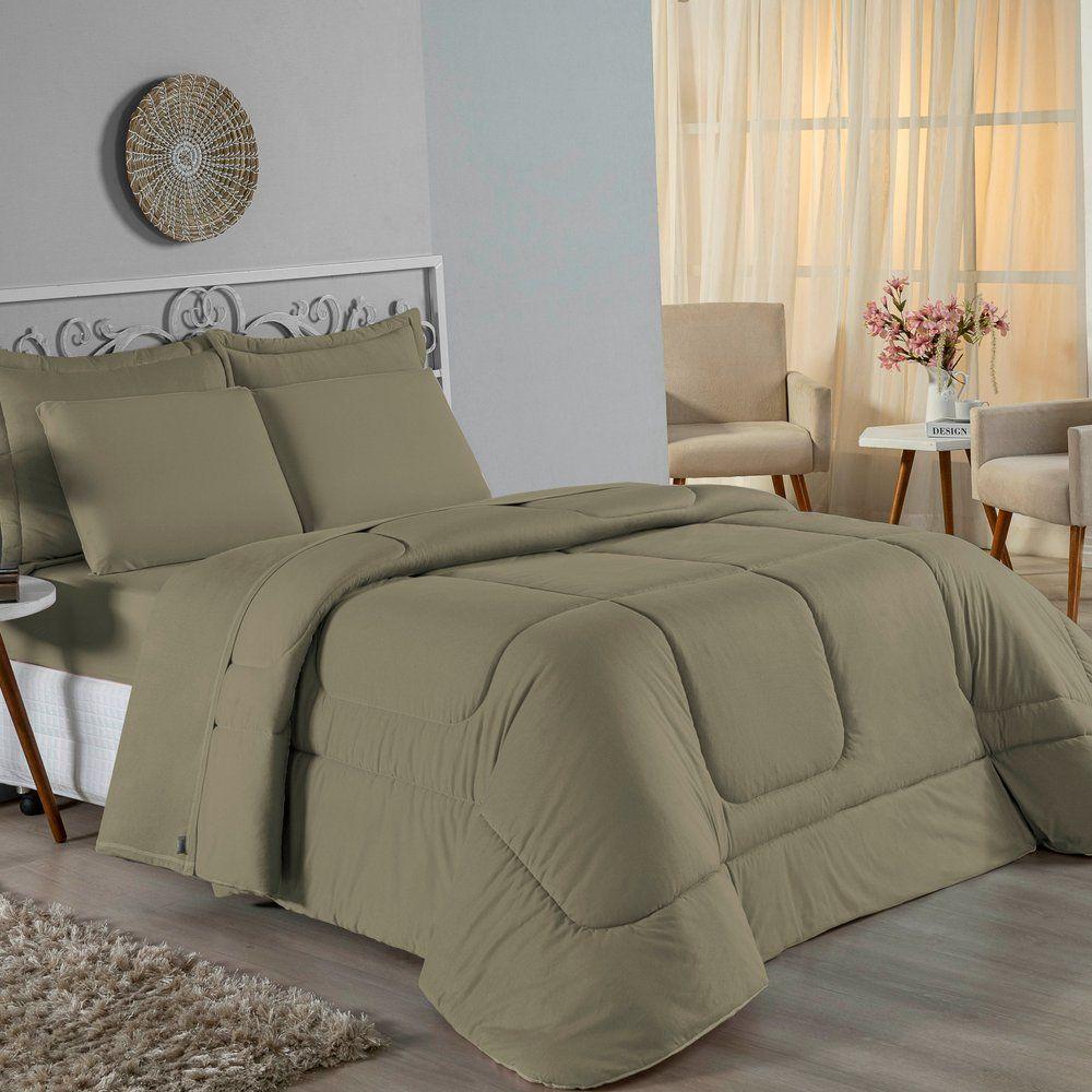Colcha Esplendida Em Micropercal 200 Fios Queen 05 Peças - Palha