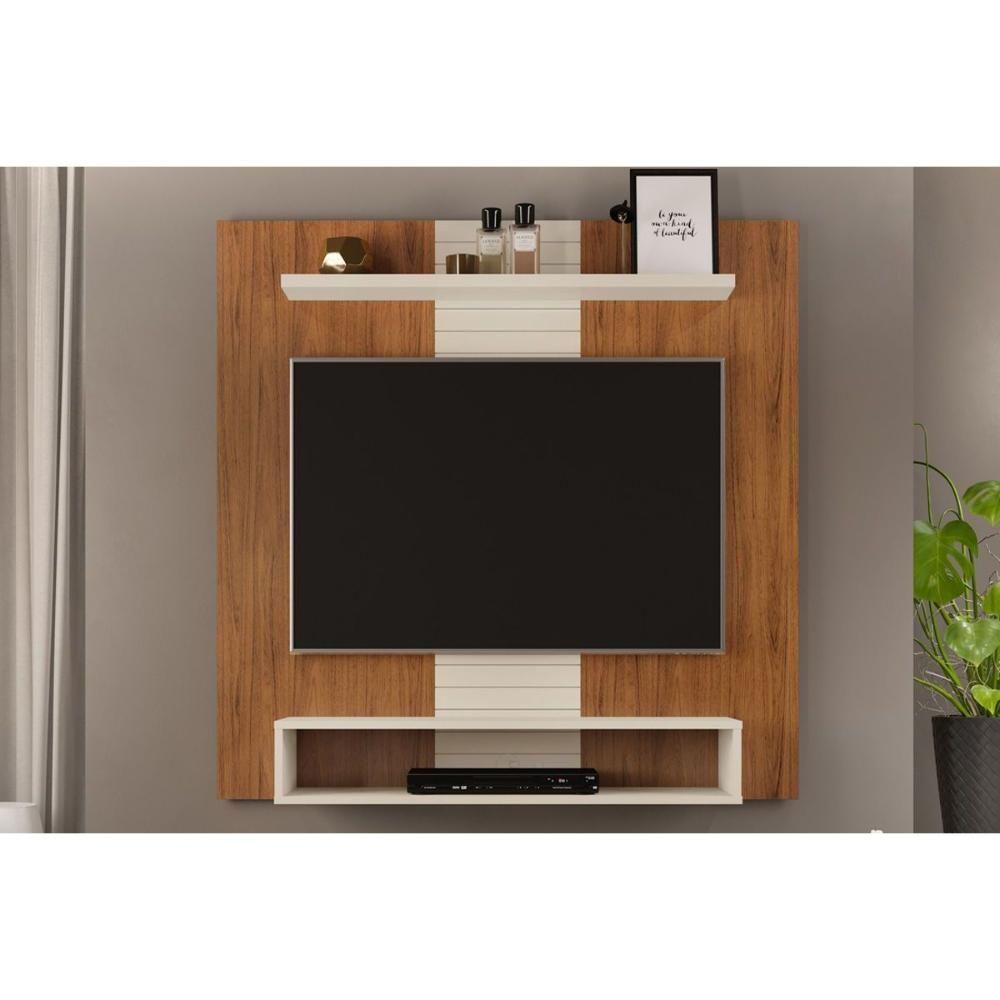 Painel Home p/TV até 47 Polegadas Smart c/ Prateleira e Nichos 120x120cm Freijó/Off White - DJ Móveis