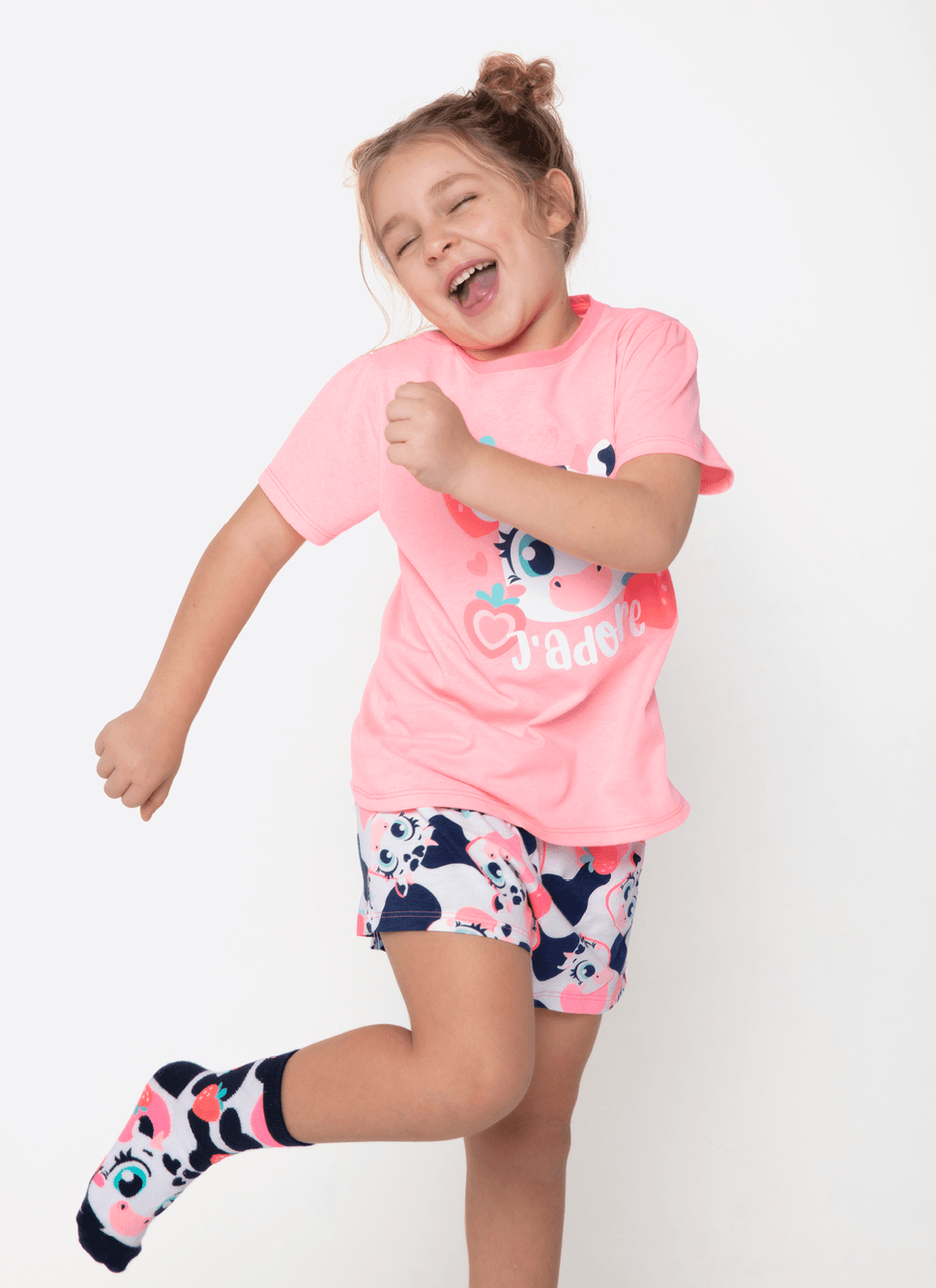 Pijama Manga Curta Algodão Menina Vaca Romântica