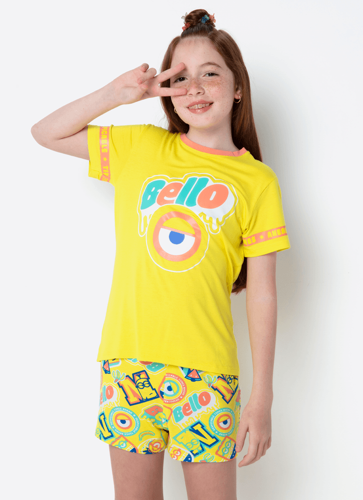 Pijama Manga Curta Viscolycra Menina Teen Minions