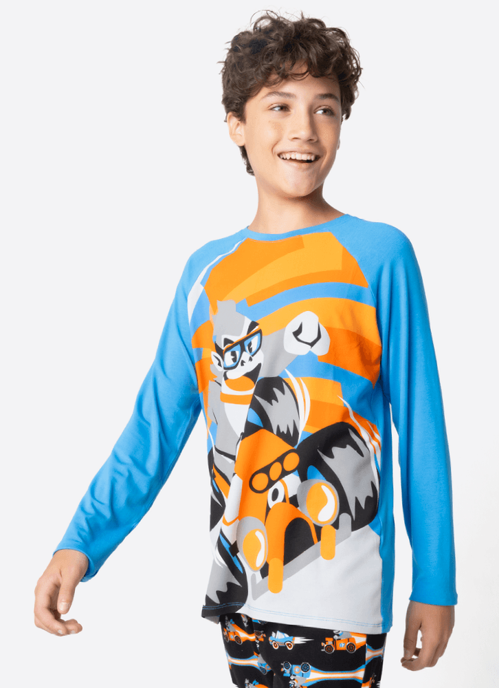Pijama Manga Longa Menino Teen Gorila Racing
