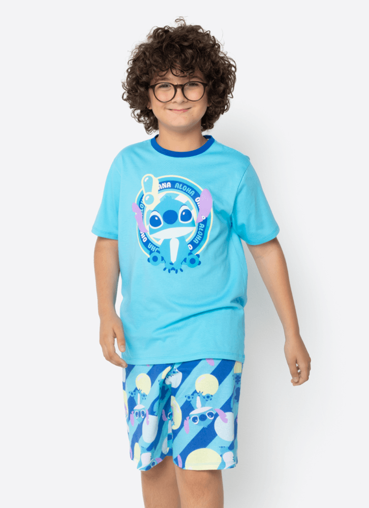 Pijama Manga Curta Algodão Menino Teen Stitch