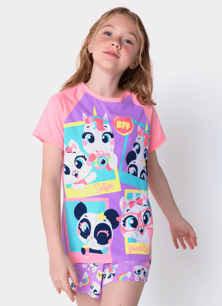 Pijama Manga Curta Viscolycra Menina Teen Multibichos Best Friend