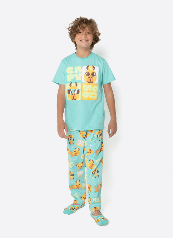 Pijama Manga Curta Algodão Menino Teen Capy Bora