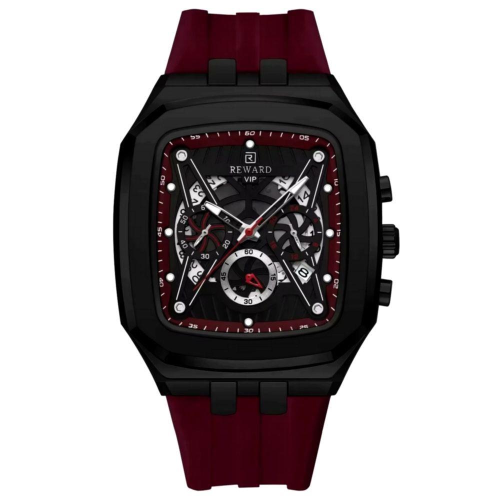 Relógio De Quartzo Masculino Design Retangular à Prova D´gua Casual Vermelho