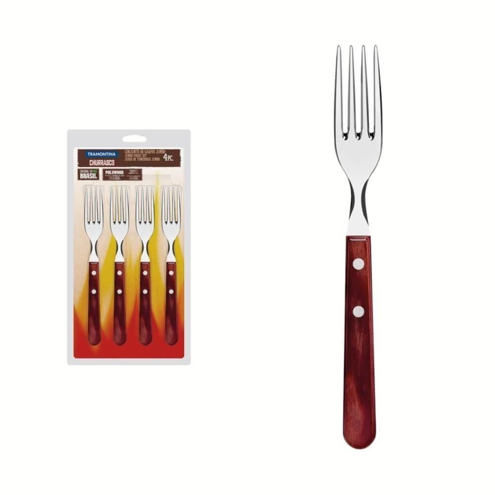 Jogo De Garfos Jumbo Tramontina Polywood Vermelho 4 Peças