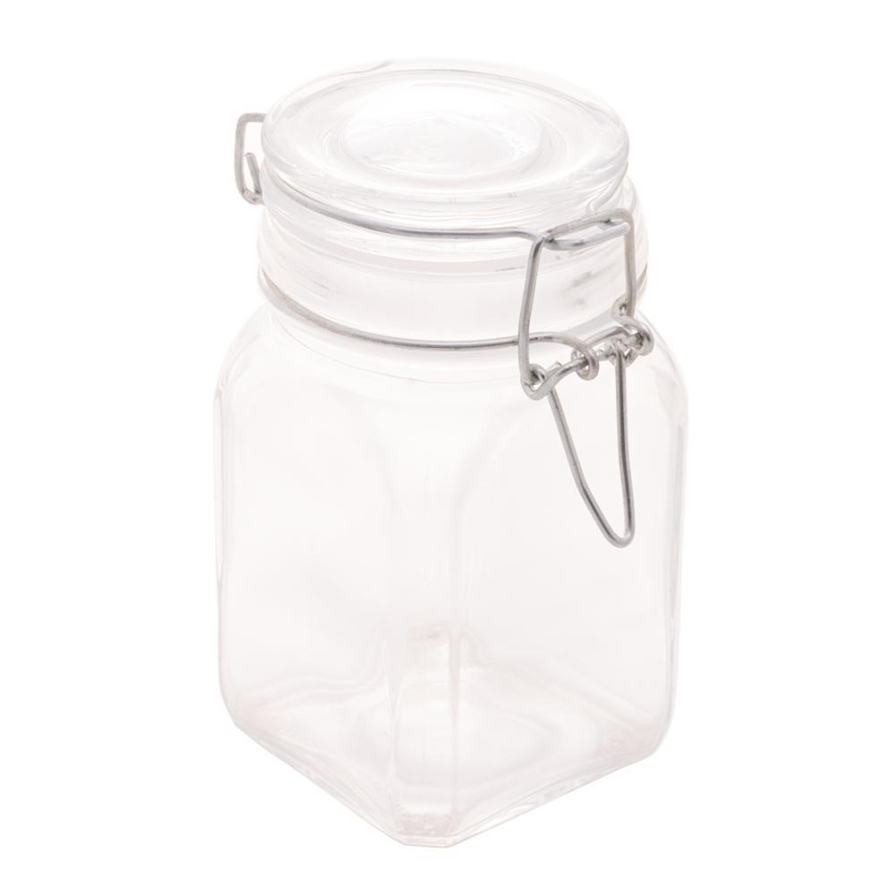 Pote 400Ml De Vidro Flat Com Tampa De Bambu Quadrado