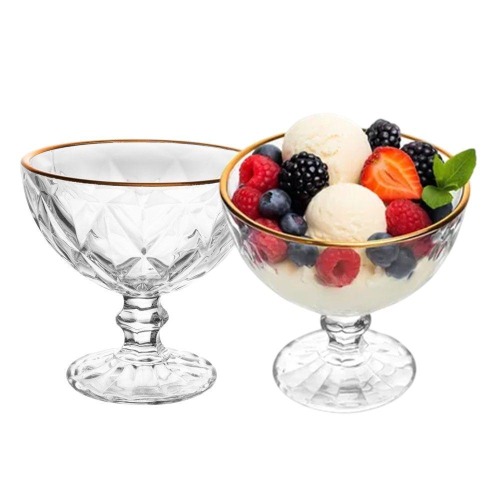 Jogo De Sobremesa 2 Taças Vidro Com Borda Fio Dourado Diamond Sorvete Lyor 250ml