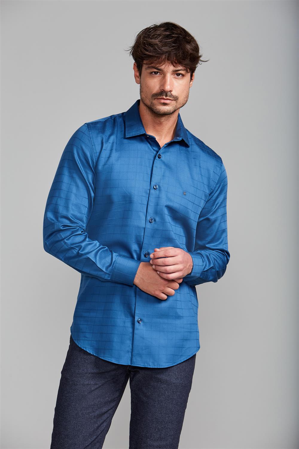 Camisa Algodão Egípcio Slim Fit - Azul Médio