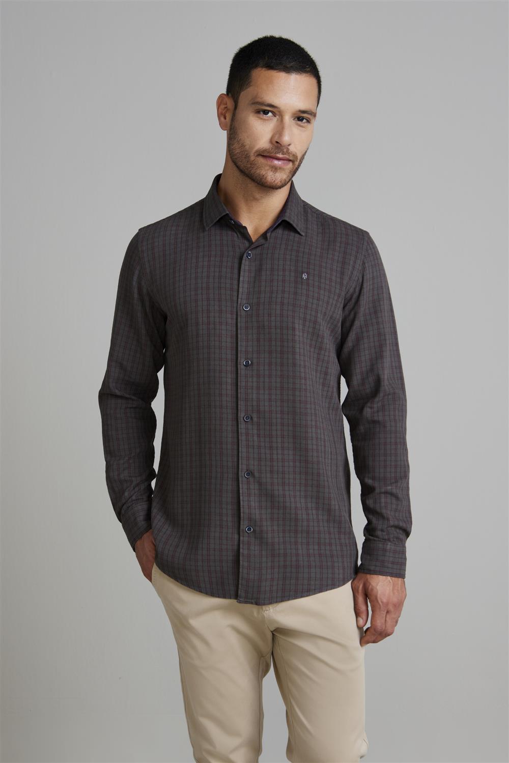 Camisa Linen Blend Slim Fit - Cinza Grafite