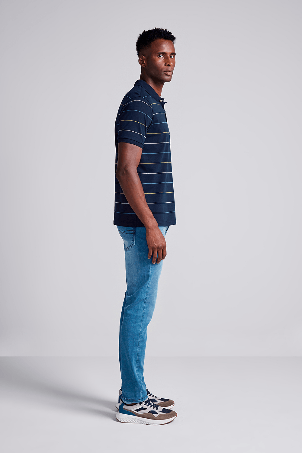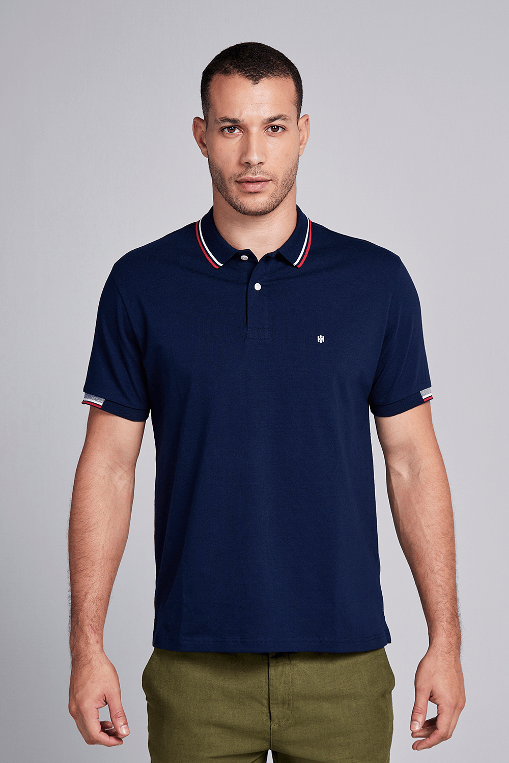 Polo Manga Curta Comfort Piquet - Azul Noturno