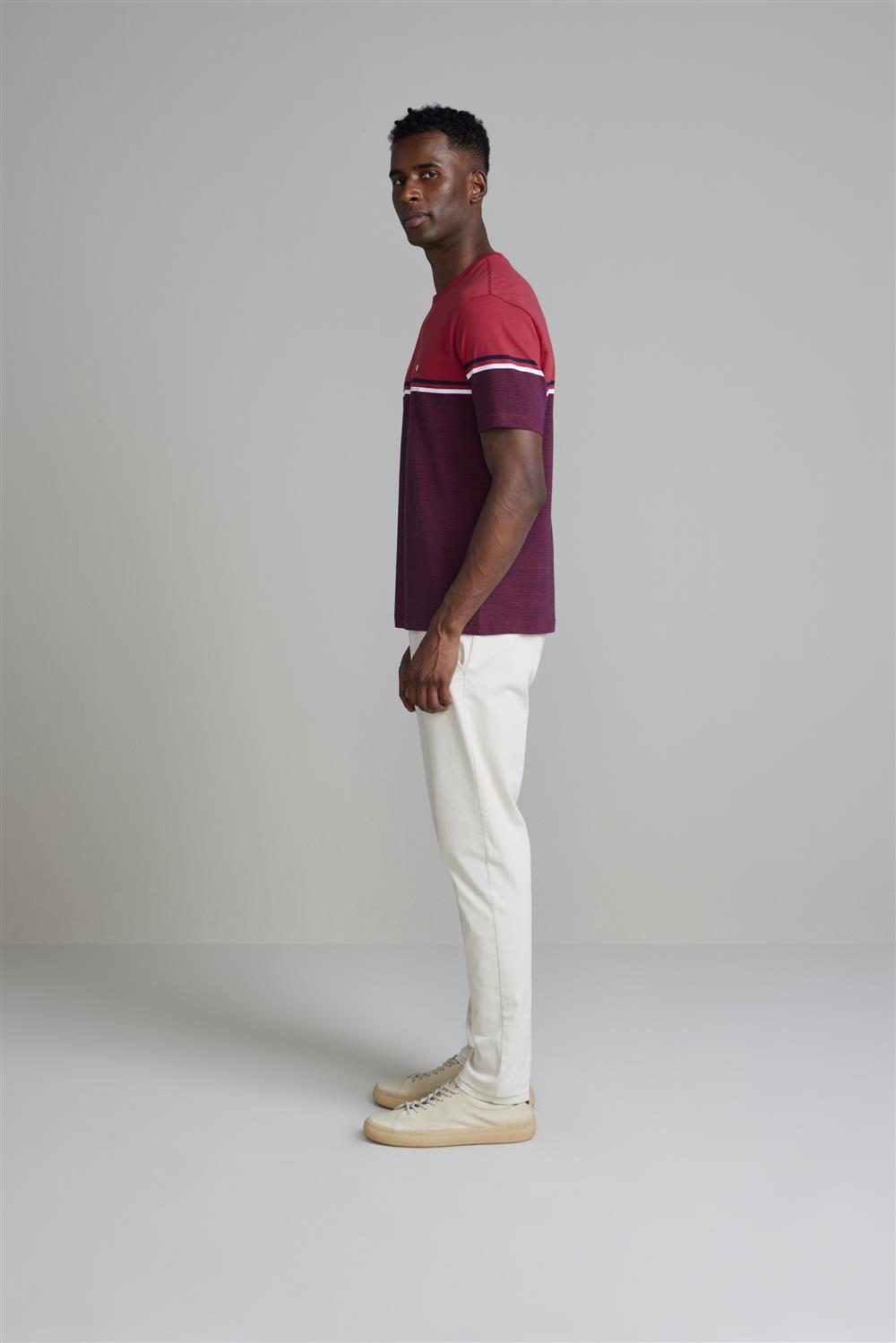 Camiseta Malha Slim Fit - Vinho Escuro / Rosa