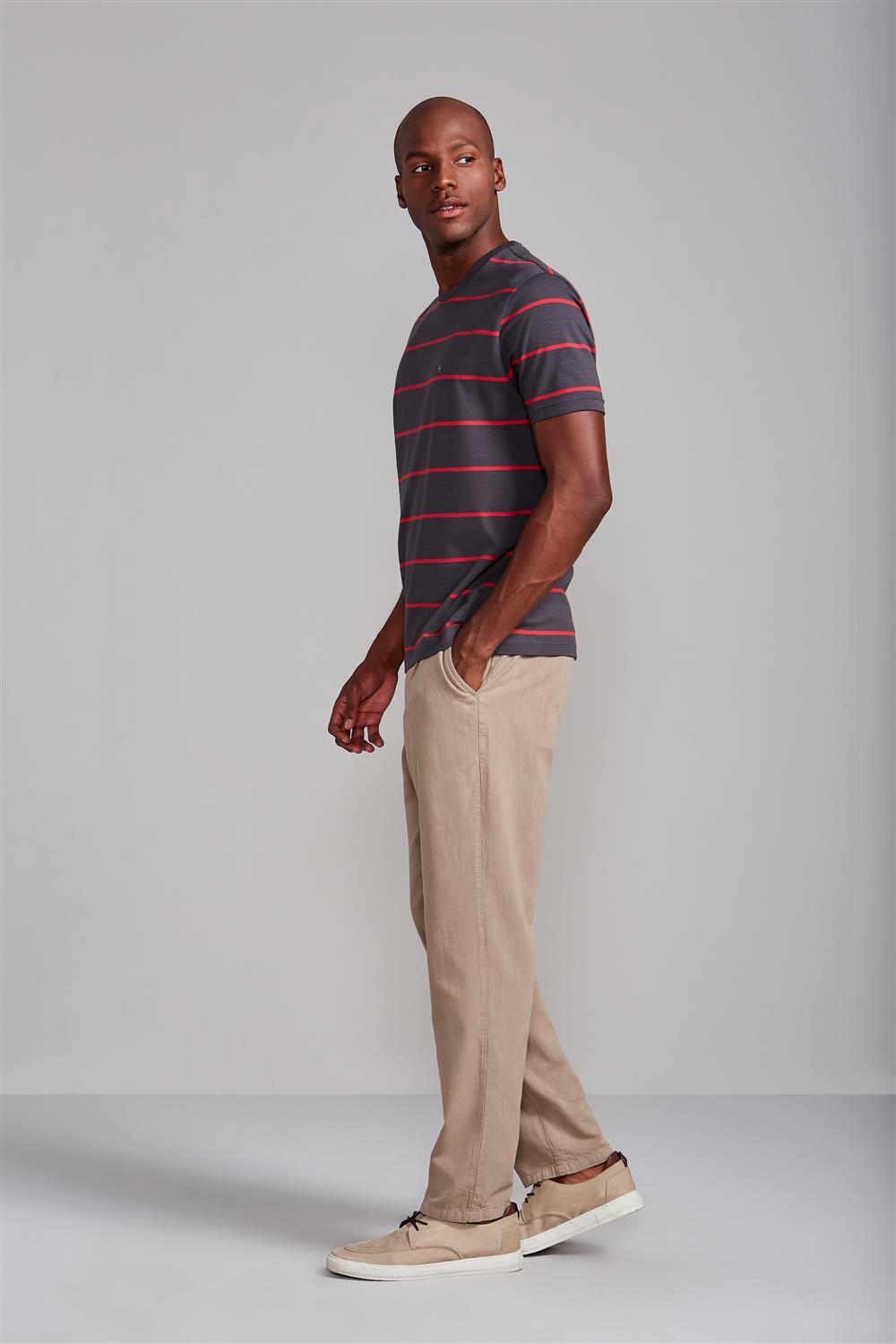Camiseta Malha Comfort - Cinza Chumbo / Vermelho Rubi