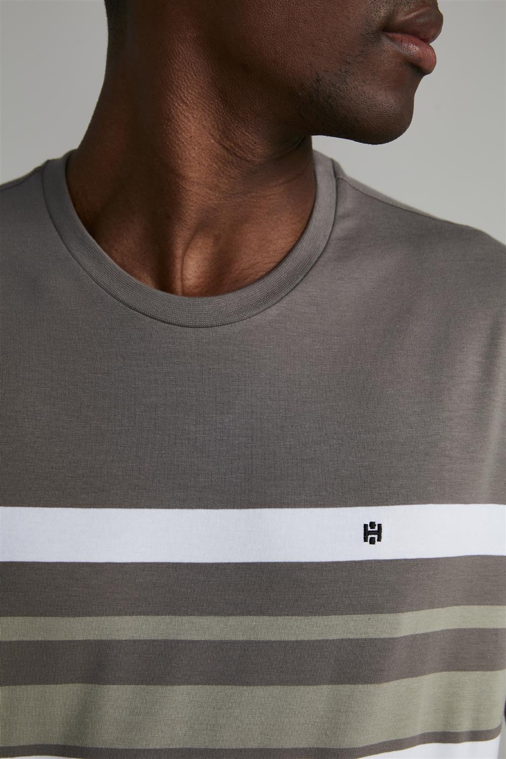 Camiseta Malha Slim Fit - Cinza / Marrom