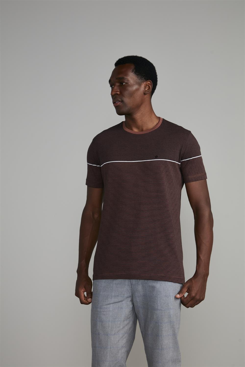 Camiseta Malha Slim Fit - Marrom Castanho / Bege Creme