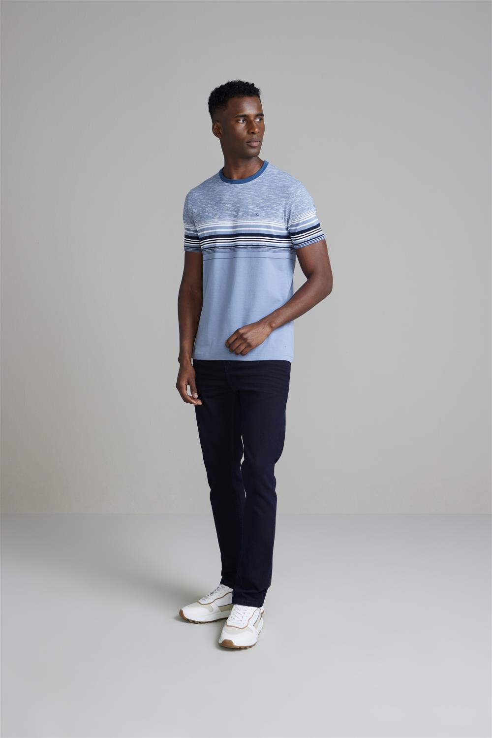 Camiseta Malha Slim Fit - Azul Noturno / Azul Jeans