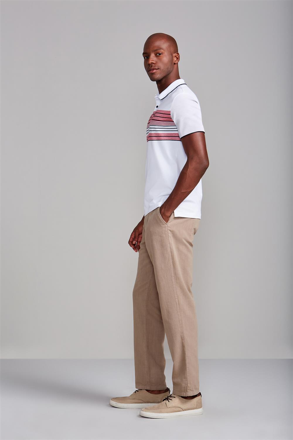 Camisa Polo Malha Comfort - Branco / Marrom Castanho