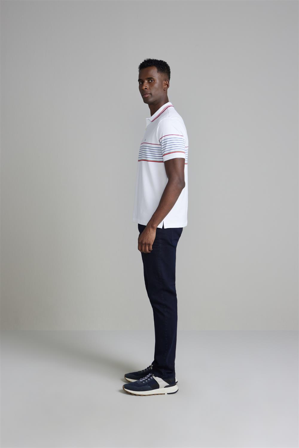 Camisa Polo Piquet Comfort -Cinza / Branco