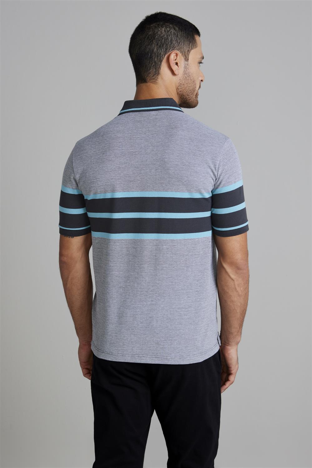 Camisa Polo com Bolso Piquet Comfort - Cinza Chumbo / Verde Malva