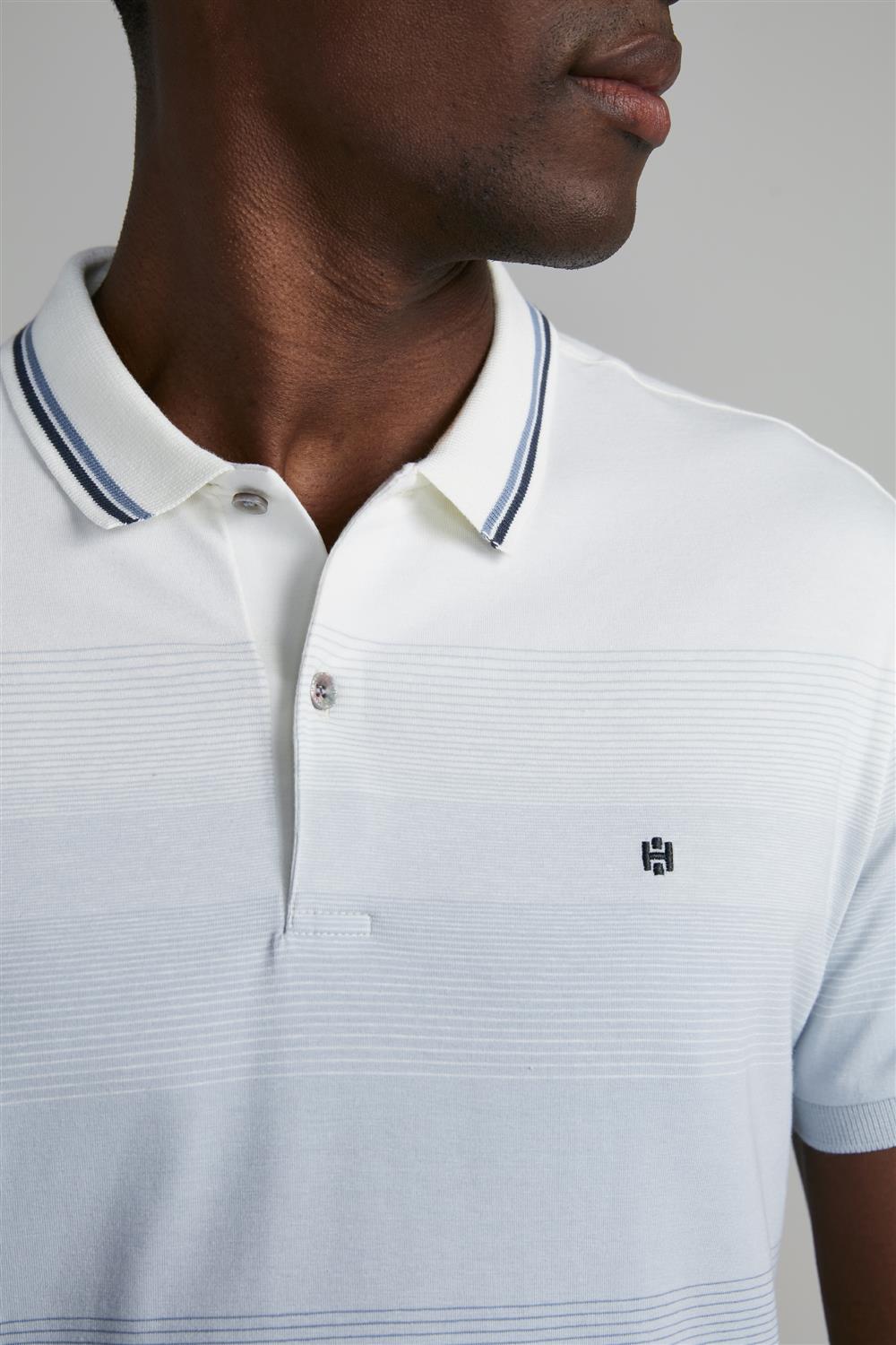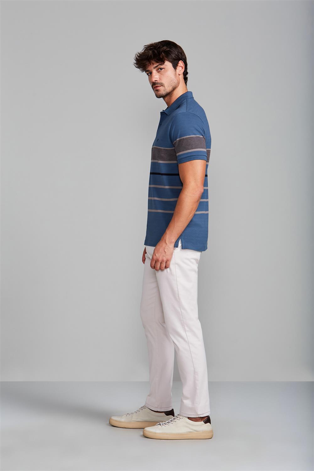Camisa Polo Malha Comfort - Creme / Azul Petróleo