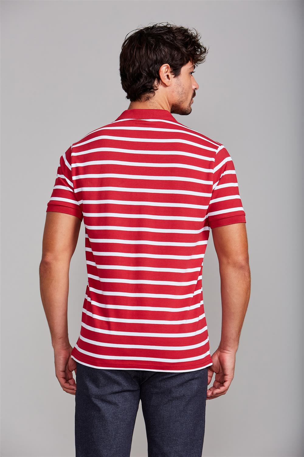 Camisa Polo com Bolso Piquet Comfort - Vermelho Rubi / Branco