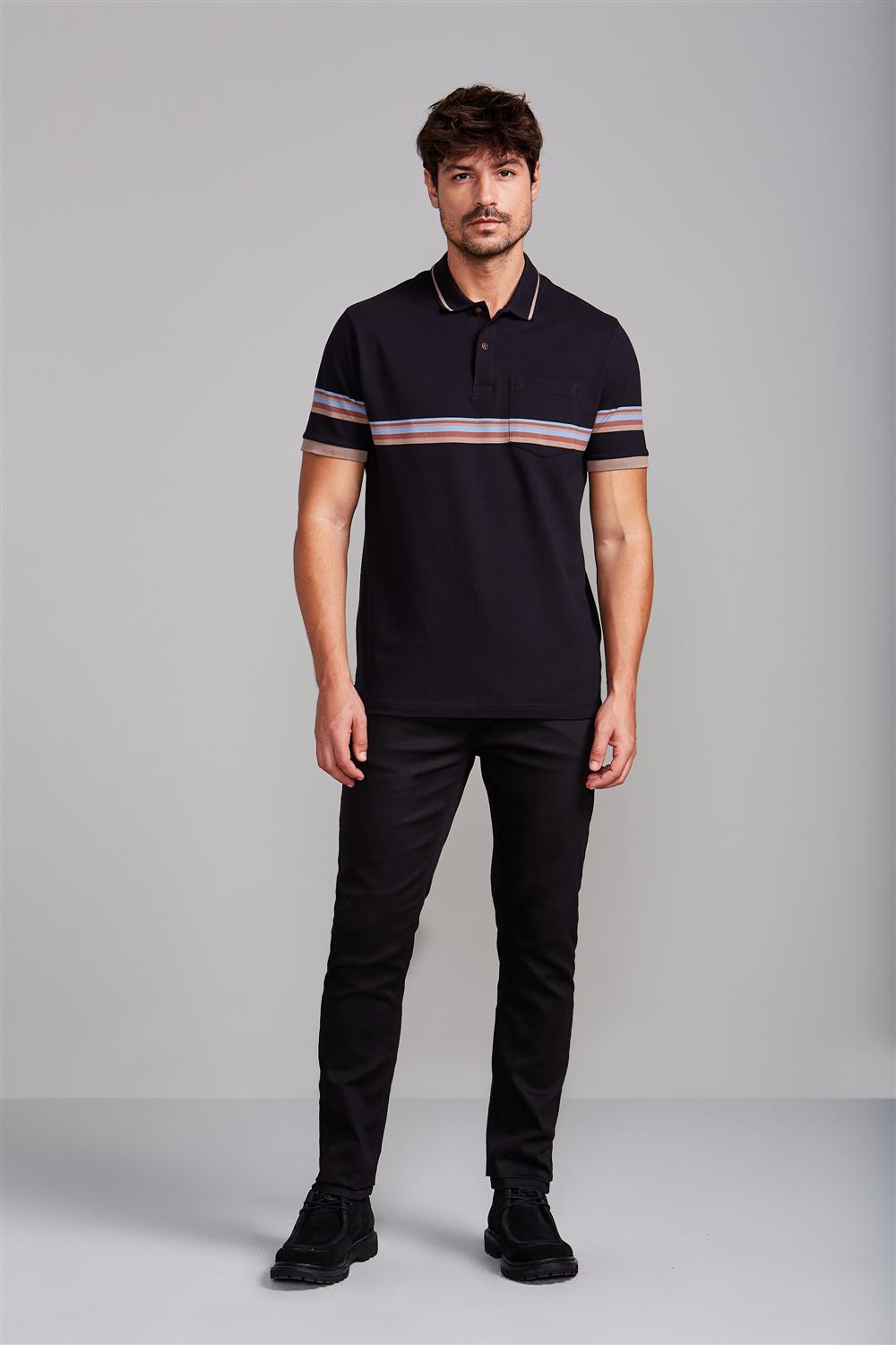 Camisa Polo com Bolso Piquet Comfort - Preto / Marrom Castanho