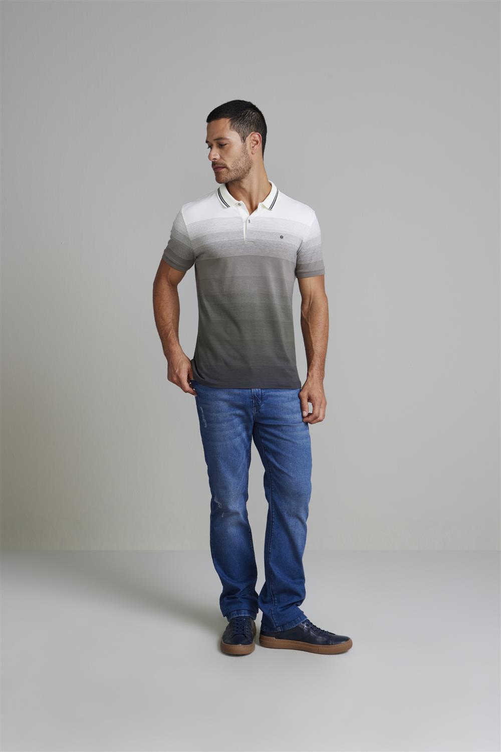 Camisa Polo Malha Comfort - Creme / Cinza Chumbo