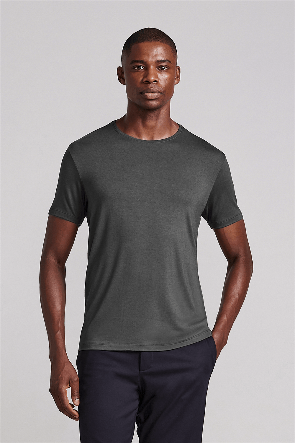 Camiseta Manga Curta Comfort Malha Básica - Cinza Escuro