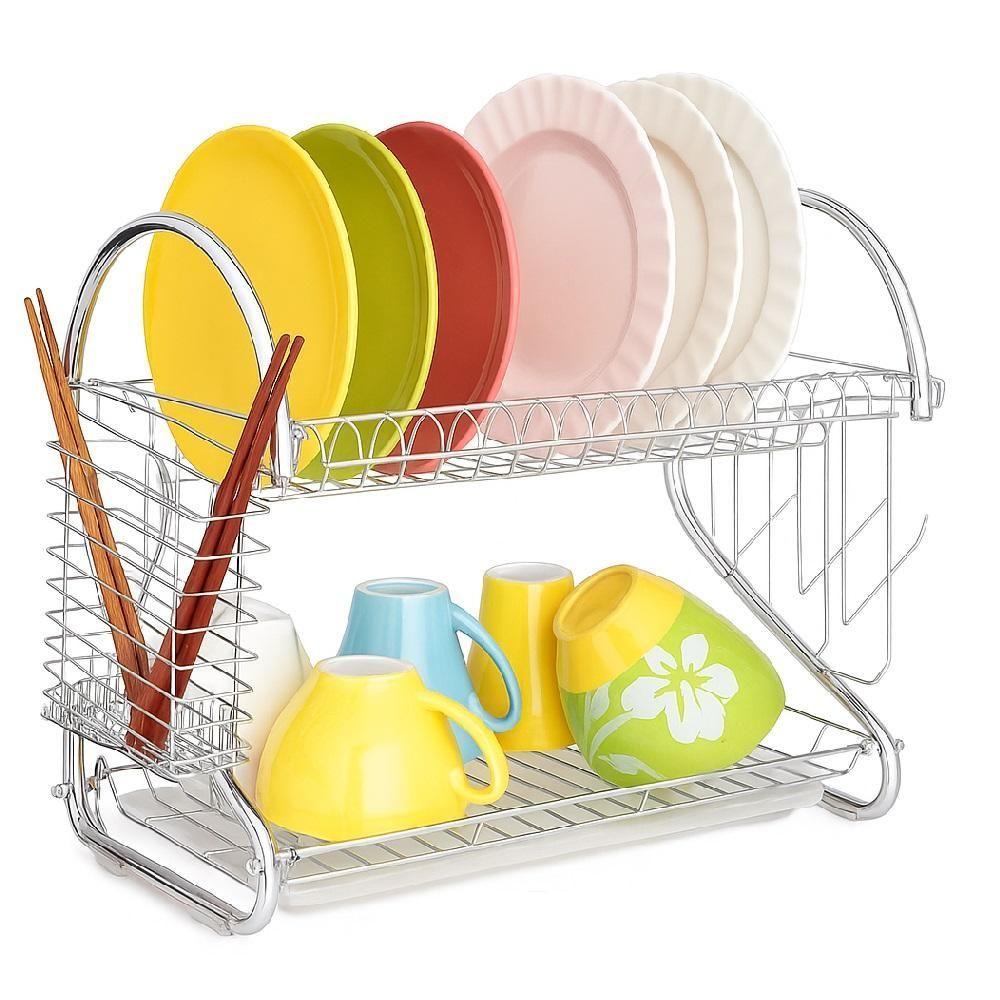Escorredor Loucas Duplo Cromado Organizador Pia Armario Bancada Suporte Porta Copo Talheres Prato