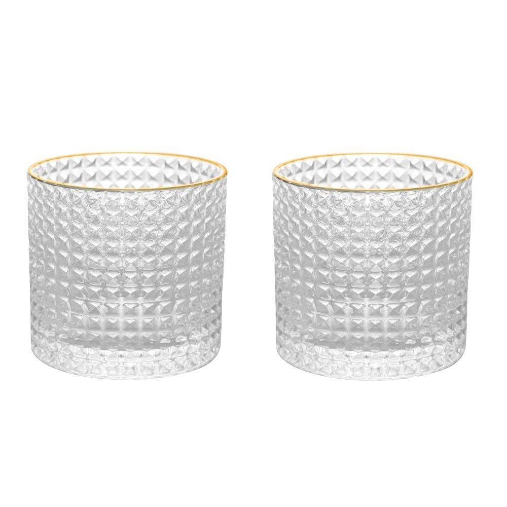Conjunto 02 Copos Para Whisky De Vidro Com Borda Dourada 320 Ml Spike Wolff