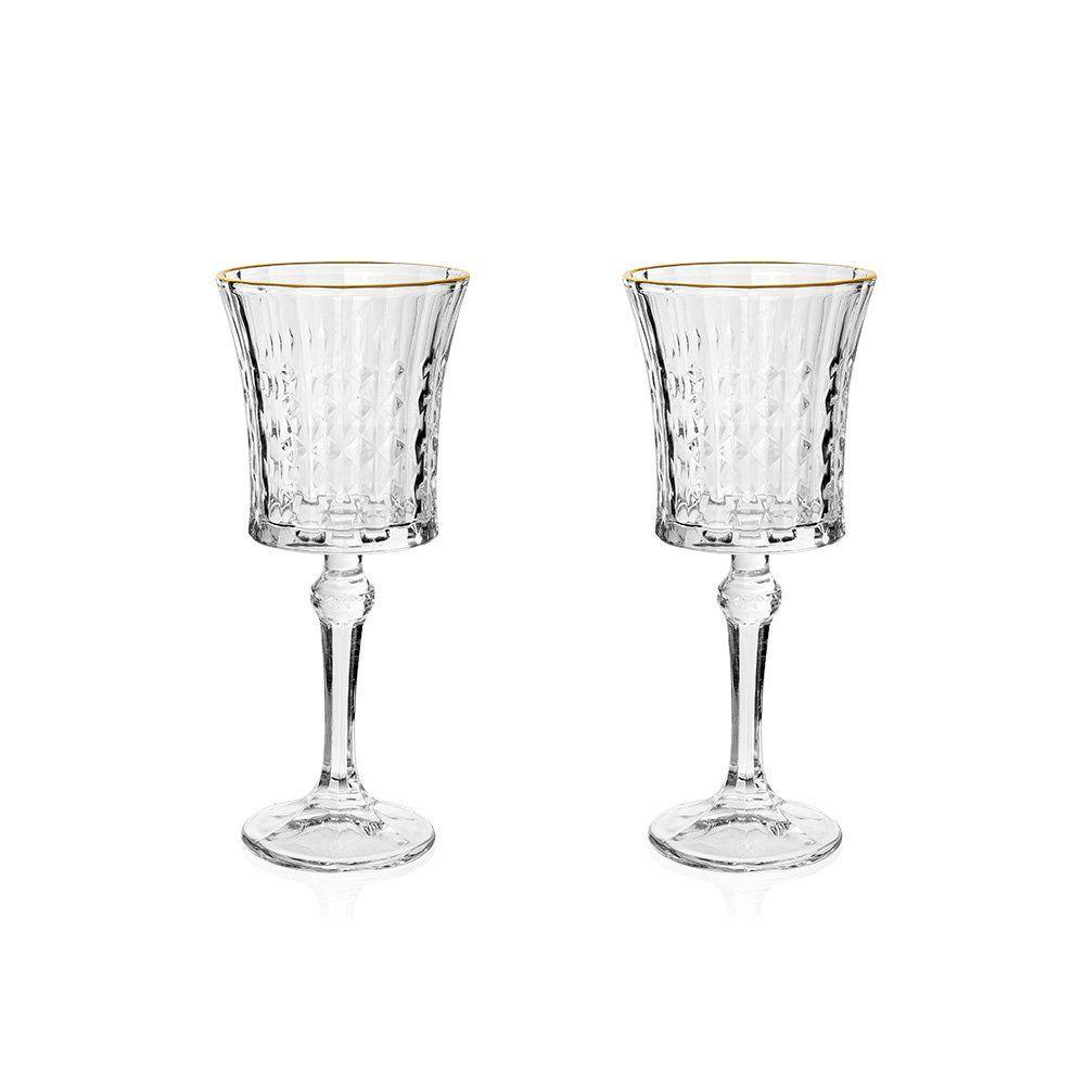 Jogo De Taças Copa E Cia 2 Peças Vitreo Com Filete Dourado 18 X 8 Cm