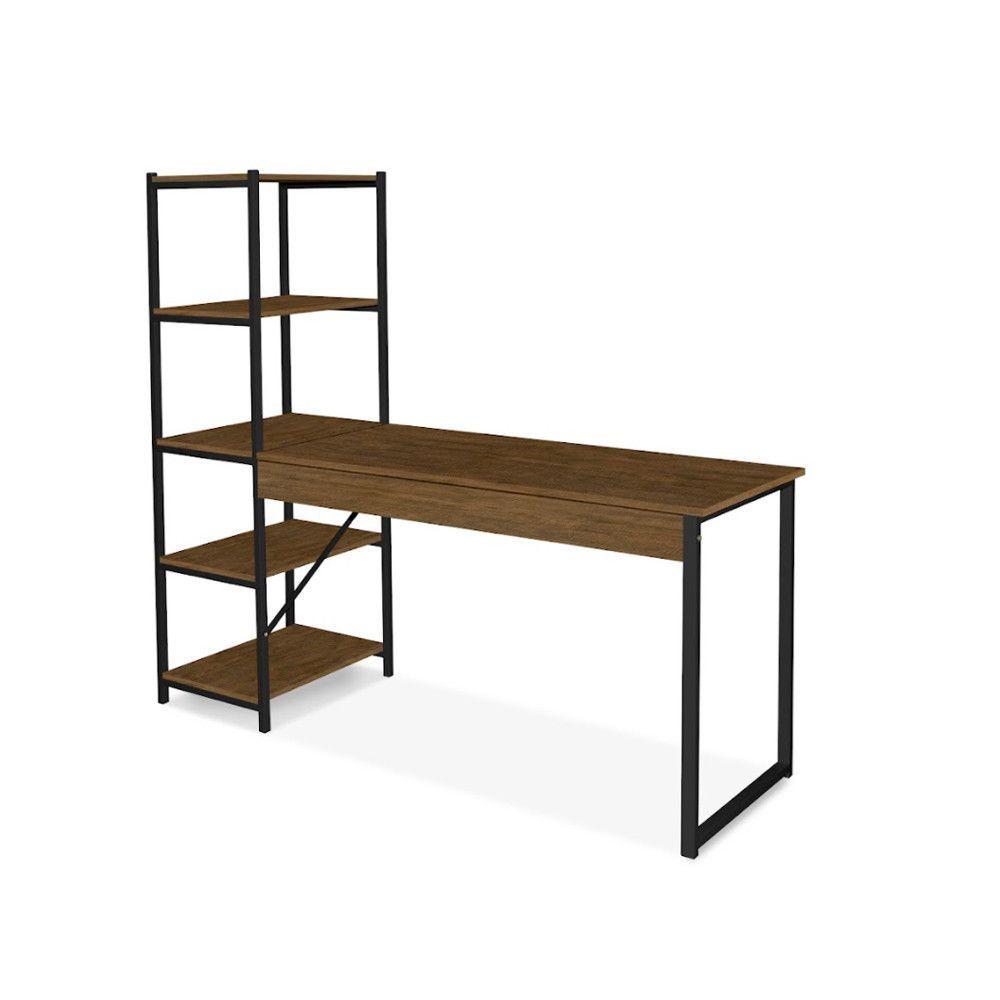 Escrivaninha Com Estante 4 Prateleiras Klm Móveis Amadeirado Com Preto