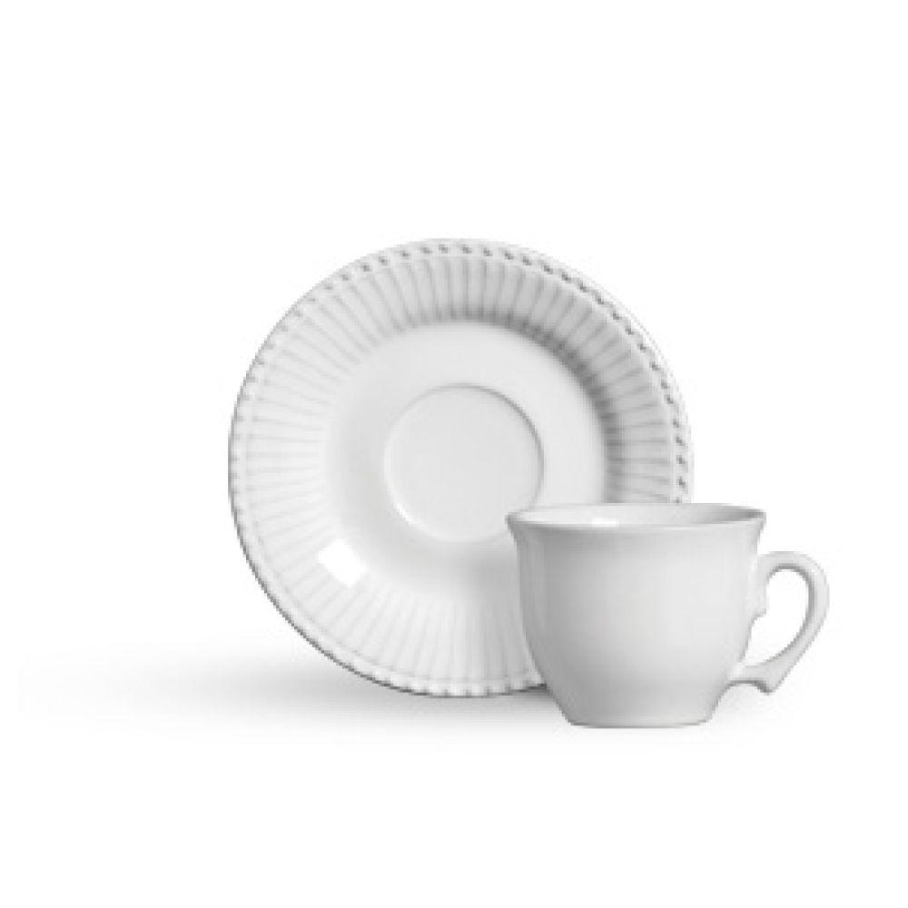Xícara De Chá Com Pires De Cerâmica Frisada 200ml Branca Scalla