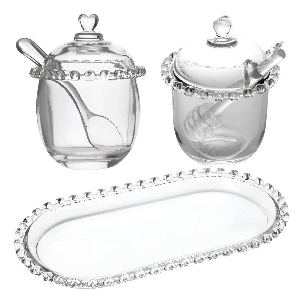Kit Meleira + Açucareiro + Bandeja De Cristal Coração Lyor