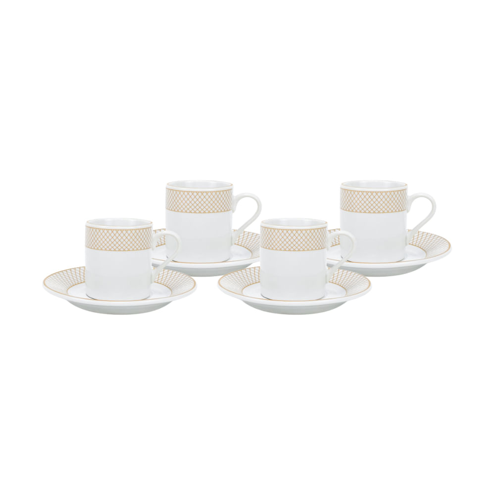 Xícara para Café com Pires de Porcelana Royal Branco 90 ml 4 Peças Hauskraft