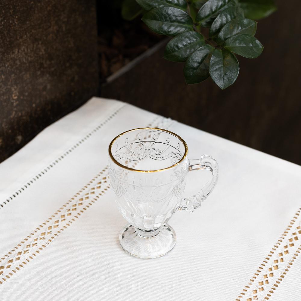 Xícara De Café Petra Cristal Com Pires E Borda Dourada 70ml