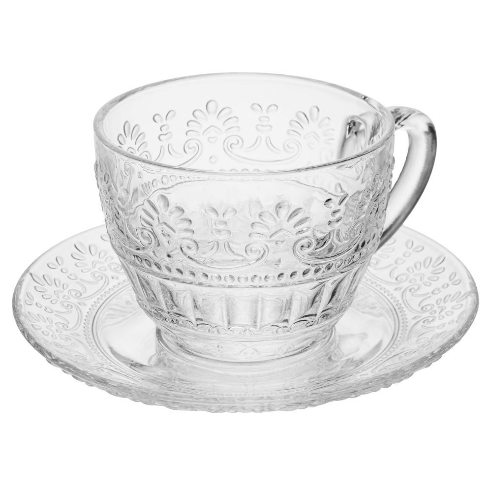 Xícara para Chá com Pires de Vidro Graffiato 230 ml 6 Peças