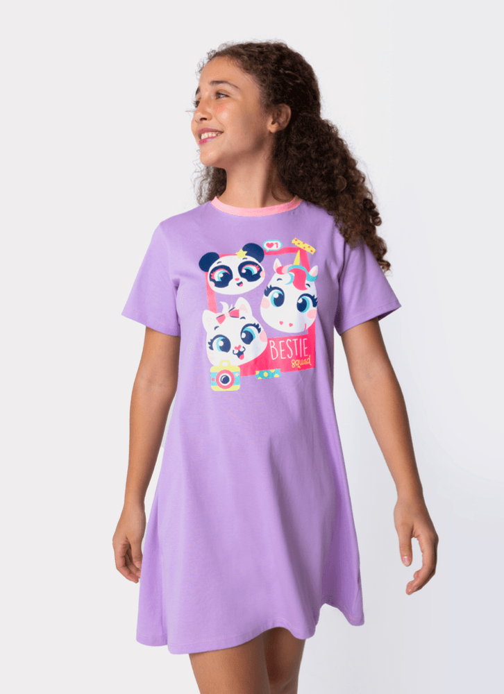 Camisola Manga Curta Algodão Menina Teen Multibichos Best Friend