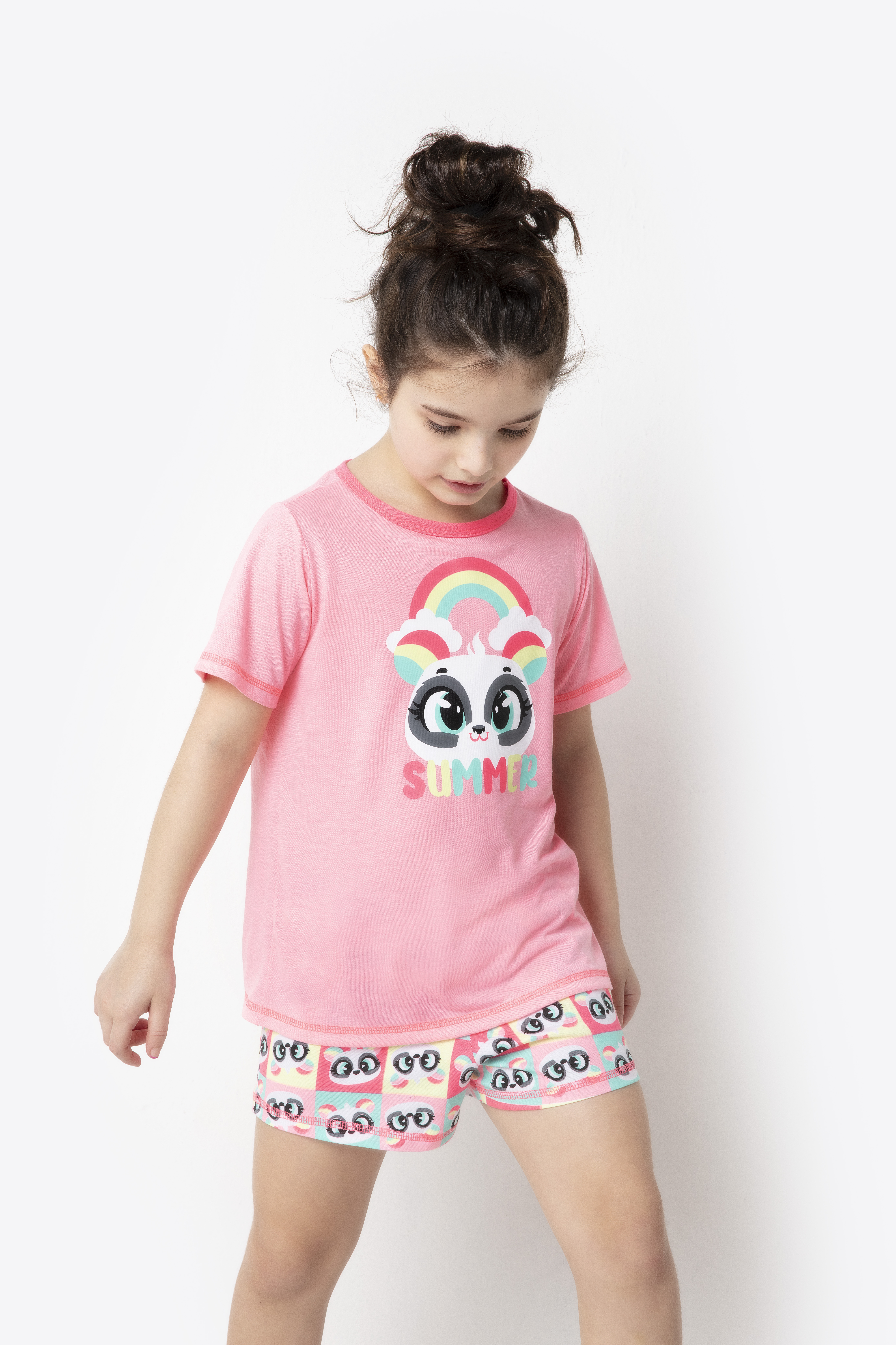 Camisola Manga Curta Algodão Menina Panda Romântico