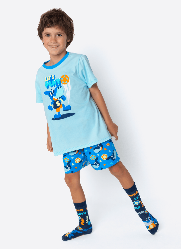Pijama Manga Curta Algodão Menino Tubarão Futevôlei
