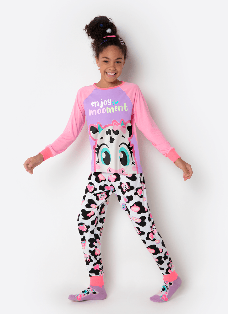 Pijama Manga Longa Viscolycra Menina Teen Vaca Patches